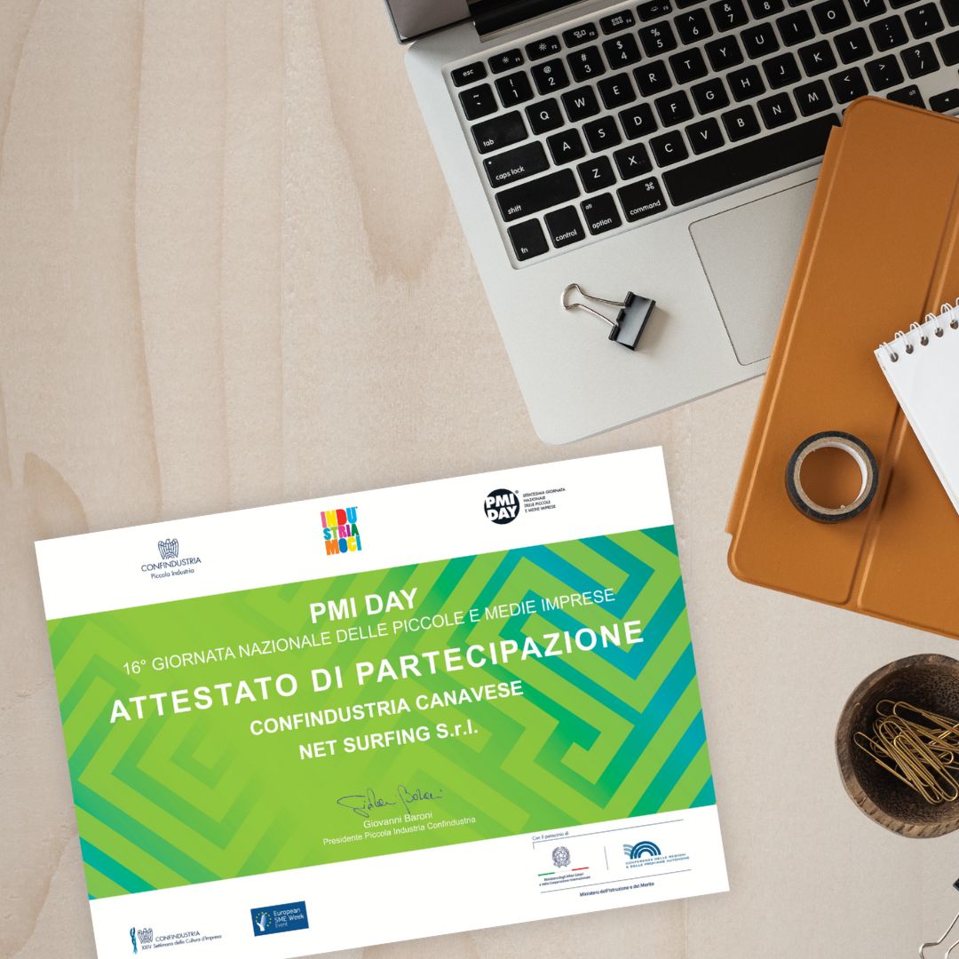 In questa cornice, Netsurf ha ricevuto l’attestato di partecipazione al PMI Day 2025, un riconoscimento per l’impegno costante nel promuovere l’orientamento professionale e la conoscenza del tessuto imprenditoriale.